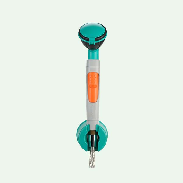 Die Hand-Augendusche ist mit dem B-SAFETY Hochleistungsbrausekopf ausgestattet, der nicht nur die Vorgaben der DIN EN 15154-2:2006 und der ANSI Z358.1-2014 erfüllt, sondern auch für eine großflächige Wasserverteilung sorgt. Dadurch werden auch die Regionen um die Augen versorgt und die Platzierung der Augen in dem Wasserstrahl ist unproblematisch. Der begrenzte, gleichmäßige und vor allem weiche Wasserstrahl ist optimiert für das Ausspülen von Chemikalien im Auge.