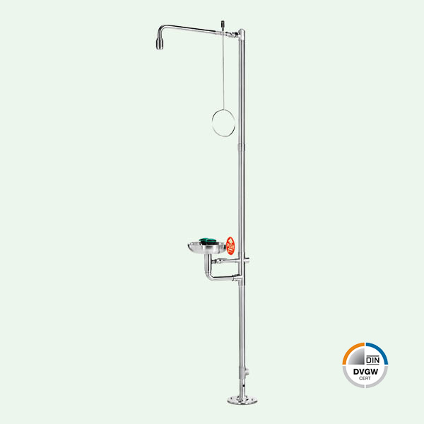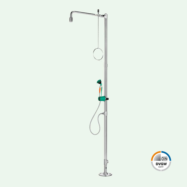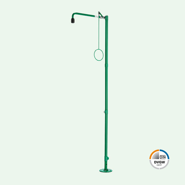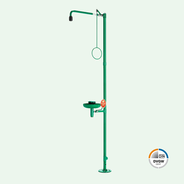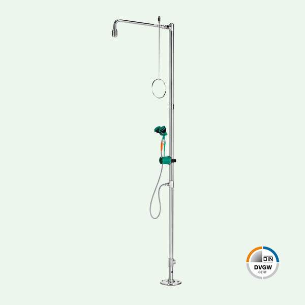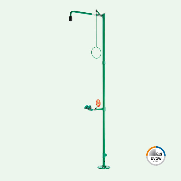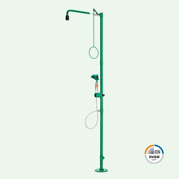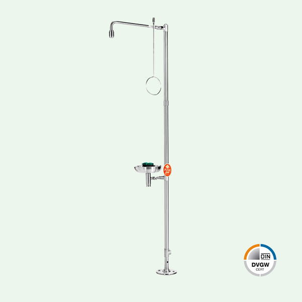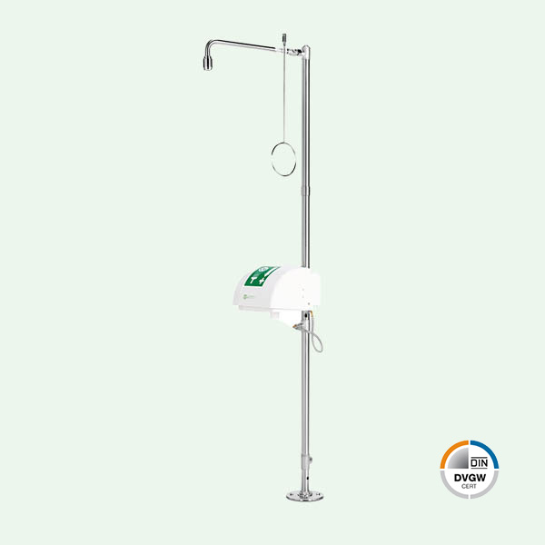 Freistehende Notduschen sind spezielle Kombinationen von Duschen, die in Situationen verwendet werden, in denen eine Wandmontage nicht möglich oder ein zentraler Anlaufpunkt für Notfälle erforderlich ist. Sie dienen zum Ablöschen und Dekontaminieren von Personen nach Unfällen. Sie sind für den Einsatz in Labor, Forschung sowie für den rauen Einsatz in der Industrie geeignet. Diese Notduschen sind vorgeschriebene Erste-Hilfe-Einrichtungen für Arbeitsplätze, an denen Mitarbeiter mit Gefahrstoffen, Säuren, Laugen, Hitze, Flammen und aber auch extremen Schmutz in Kontakt kommen können. Der begrenzte, gleichmäßige und vor allem weiche Wasserstrahl ist optimiert für das Abspülen von Chemikalien auf der Haut.