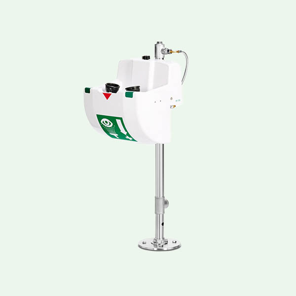 Die korrekte Strahlhöhe und gewünschte Durchflussmenge wird über das integrierte Mengenregulierventil vor Ort eingestellt. Die Augendusche ist durch den integrierten Klappschutzdeckel komplett gegen Verschmutzung geschützt. Damit ist diese Dusche die richtige Lösung für den rauen Industriealltag. Auf der Abdeckung ist ein Hinweisschild für eine Augenspüleinrichtung gemäß DIN EN ISO 7010 mit einer Erkennungsweite von 17 Metern angebracht.
